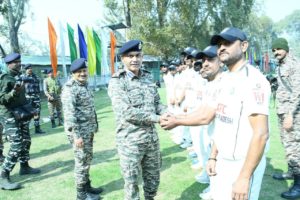 Srinagar- The CRPF Cup 2023 T20 Cricket Tournament continued to deliver exhilarating cricket action on its sixth day, treating spectators to remarkable performances and closely contested matches. Sh. Mathew A. John, DIG, Srinagar South Range, CRPF, graced the occasion and joined the teams for the toss, providing encouragement and support to the players.