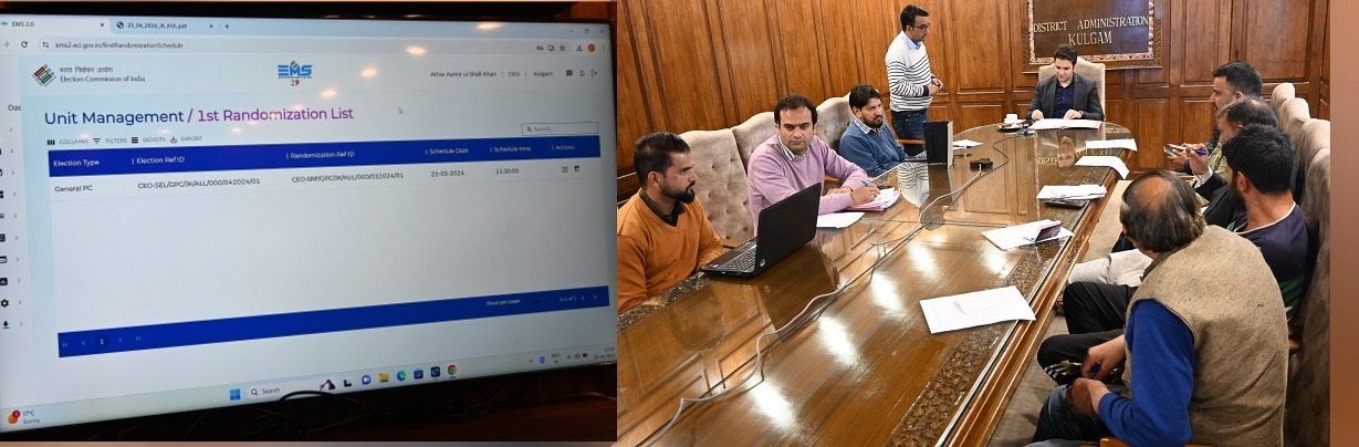 KULGAM, APRIL 25: Supplementary 1st Randomization of Electronic Voting Machines (EVM) and VVPATs for the General Elections to the Lok Sabha 2024 was held today at Kulgam in accordance with the Election Commission of India guidelines.