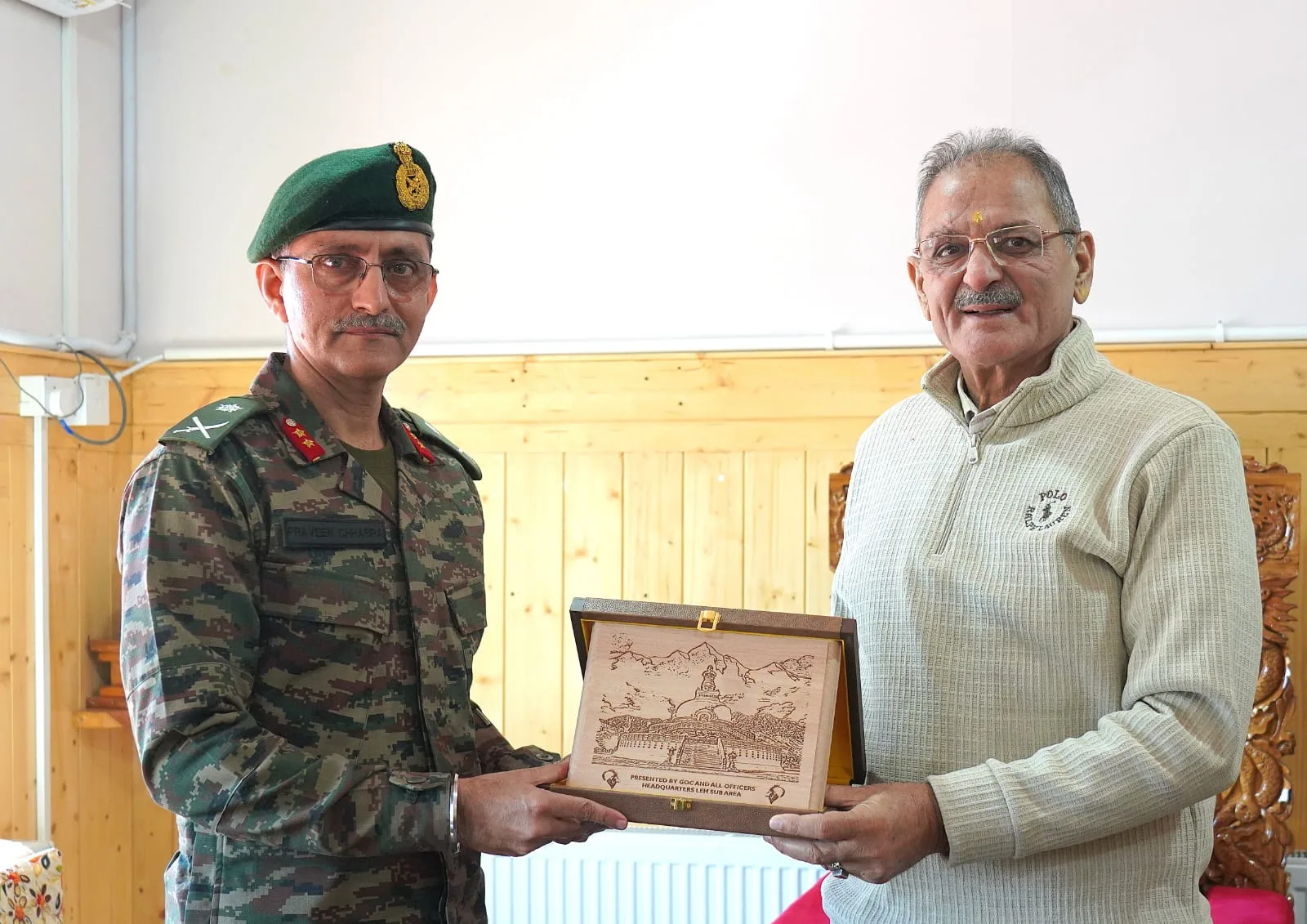 Leh, Oct 17 (JKNS): Major General Praveen Chhabra, General Officer Commanding, 72 Sub Area, on Friday paid a courtesy visit to the Lieutenant Governor of Ladakh, Shri Kavinder Gupta, at the LG Secretariat, Leh.