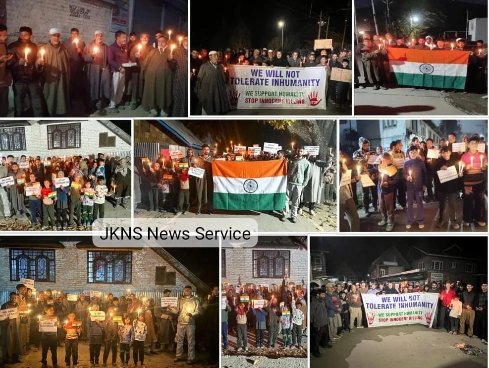 Sopore, Nov 12 (JKNS): Candlelight marches were held across Sopore, Zaingair, Rafiabad, Langate, and Handwara on Wednesday evening to strongly condemn the recent terror incident near Delhi’s Red Fort and to express solidarity with the victims and their families.