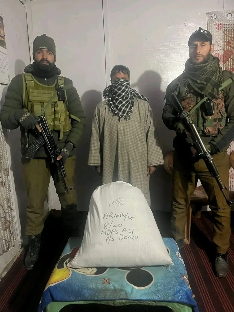 In a statement issued here to news agency JKNS reads, Police Post Verinag received credible information that one individual, Mukhtar Ahmad Haji son of Gh. Rasool Haji resident of Bonagund Verinag, had concealed cannabis-like substance in a tin shed near his residence. Acting swiftly on this input, a case FIR No. 110/2025 under Sections 8/20 of the NDPS Act was registered at Police Station Dooru, and investigation was taken up.