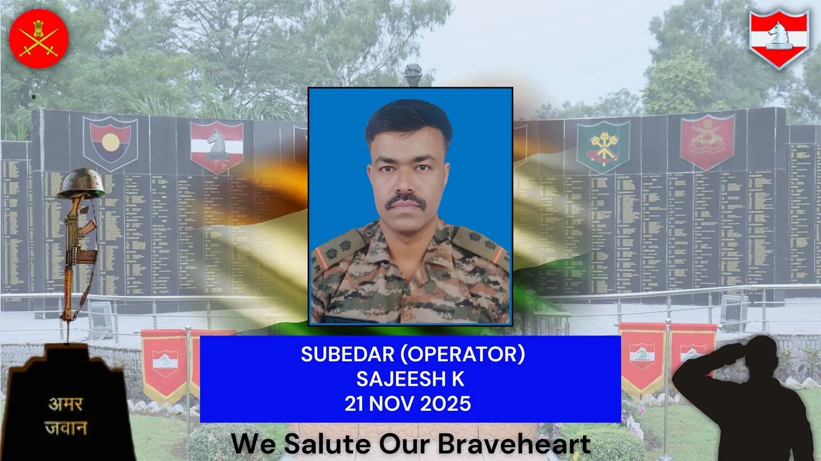 As per news agency JKNS, the White Knight Corps in a post on X said, “GOC White Knight Corps and all ranks pay solemn tribute to Subedar (Operator) Sajeesh K, who made the supreme sacrifice while on an area domination patrol on 21 Nov 2025. We stand with the bereaved family in this hour of grief.”