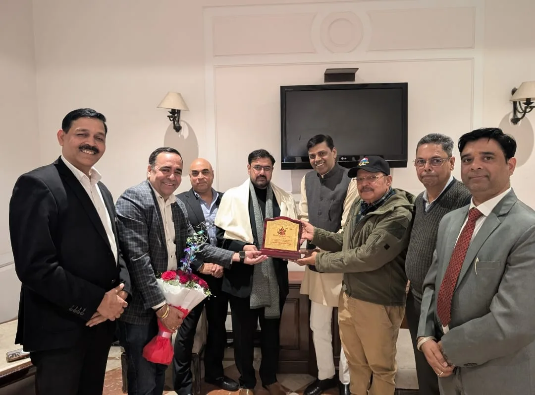 New Delhi, Dec 1 (JKNS): A delegation of the World Brahmin Federation (WBF), led by Chairman Shashikant Sharma, President K.C. Pandey, and Vice President Kailash Sharma, called on Minister for FCS&CA, Transport, IT, Youth Services & Sports, Satish Sharma in New Delhi on Tuesday.