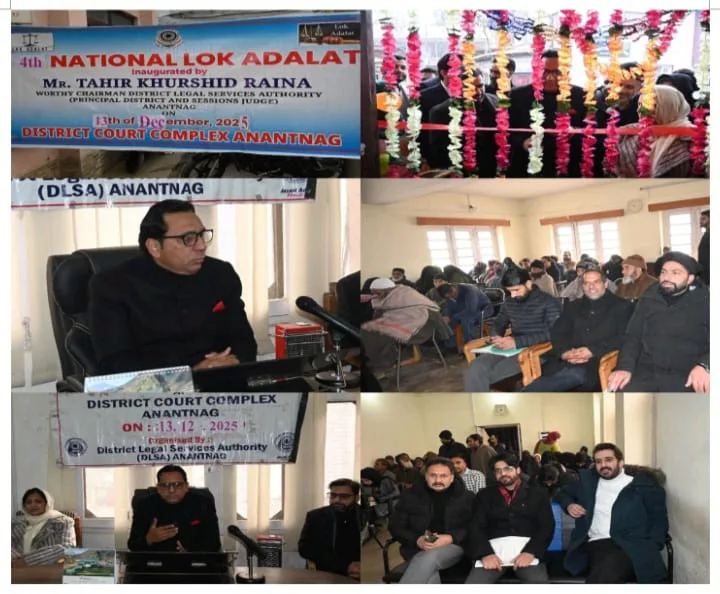 Anantnag, Dec 13 (JKNS): The 4th National Lok Adalat was organised on Saturday at the District Court Anantnag and other subordinate courts of the district under the chairmanship of Tahir Khurshid Raina, Principal District & Sessions Judge (PDJ), Anantnag.