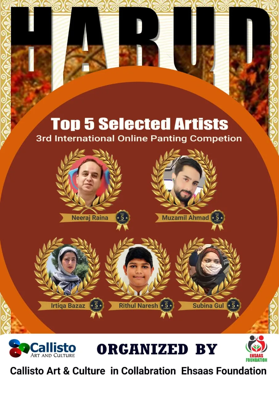Srinagar, 01 Jan: Callisto Art & Culture, in collaboration with the Ehsaas Foundation, successfully organised the 3rd International Art Competition on the theme “Harud”, witnessing participation from artists across India and several countries. The theme reflected autumn as a symbol of transition, memory, resilience, and renewal, deeply connected to Kashmir’s cultural and emotional ethos.