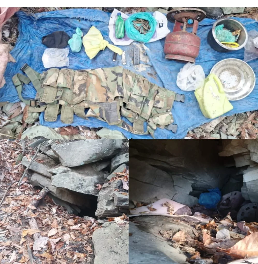 Besides arms and ammunition, the forces also seized administrative and survival material including a gas stove, combat pouches, tarpaulin sheets, foam bedding, cooking utensils, a “housewife kit”, medicines and food items such as atta, noodles and biscuits, indicating that the hideout was being used as a transit or long-term shelter by terrorists.