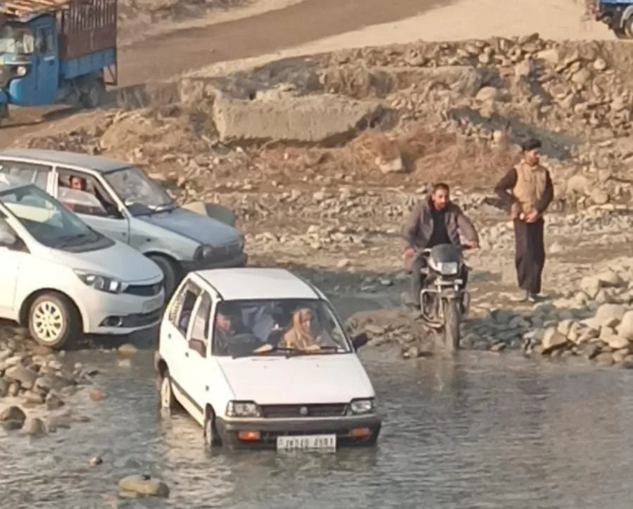 Srinagar, Jan 14 (JKNS): The prolonged closure of the Chadoora bridge in central Kashmir’s Budgam district has compelled residents to take dangerous daily routes through a river channel, as authorities fail to restore the vital link even two months after its shutdown.