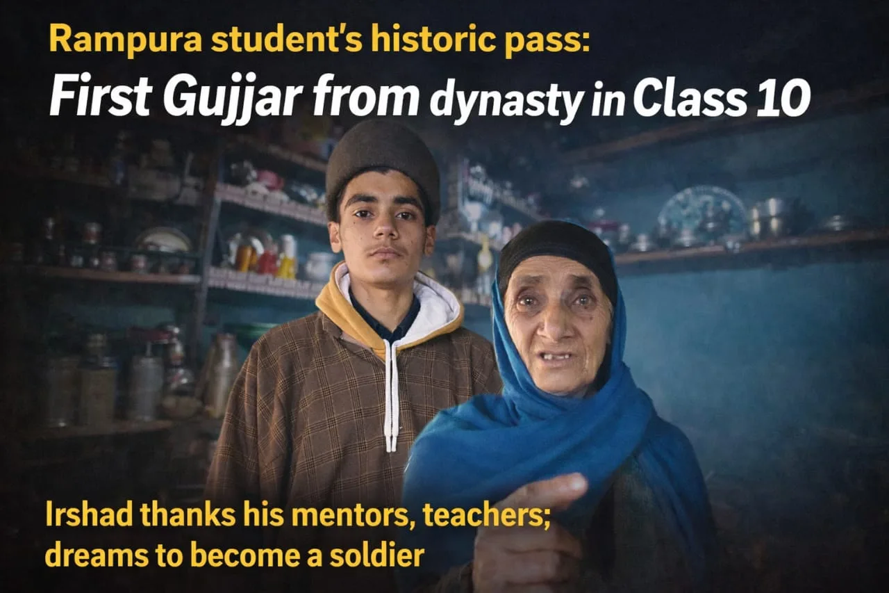 Sopore, Jan 18 (JKNS): In a remarkable achievement against all odds, Irshad Hussain Kissana, son of Mohd Sadeeq Kissana of Rajpora area in the Sopore hills, has successfully cleared his Class 10 board examination, becoming the first from his Gujjar family to achieve this milestone.
