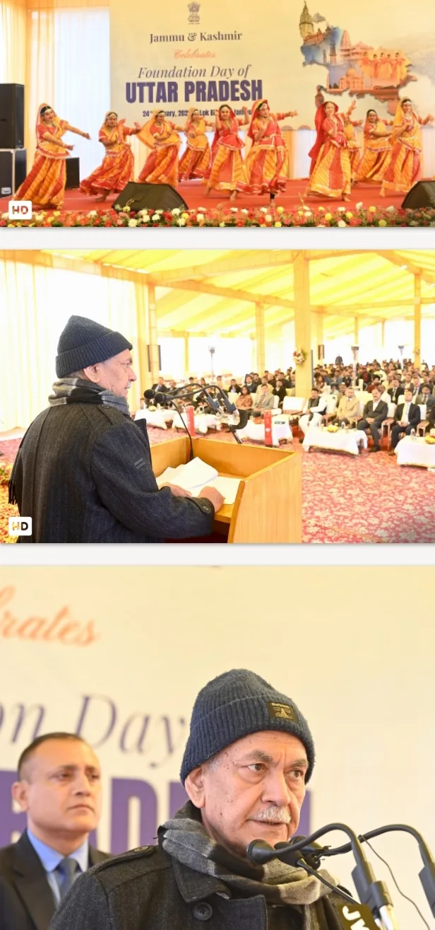 Jammu, Jan 24 (JKNS): Lieutenant Governor Manoj Sinha on Saturday attended the Uttar Pradesh Foundation Day celebrations at Lok Bhavan, Jammu, where he highlighted Uttar Pradesh’s unmatched civilisational legacy, spiritual depth and cultural influence, describing the state as India’s heartland that continues to guide the nation’s moral, philosophical and developmental journey.