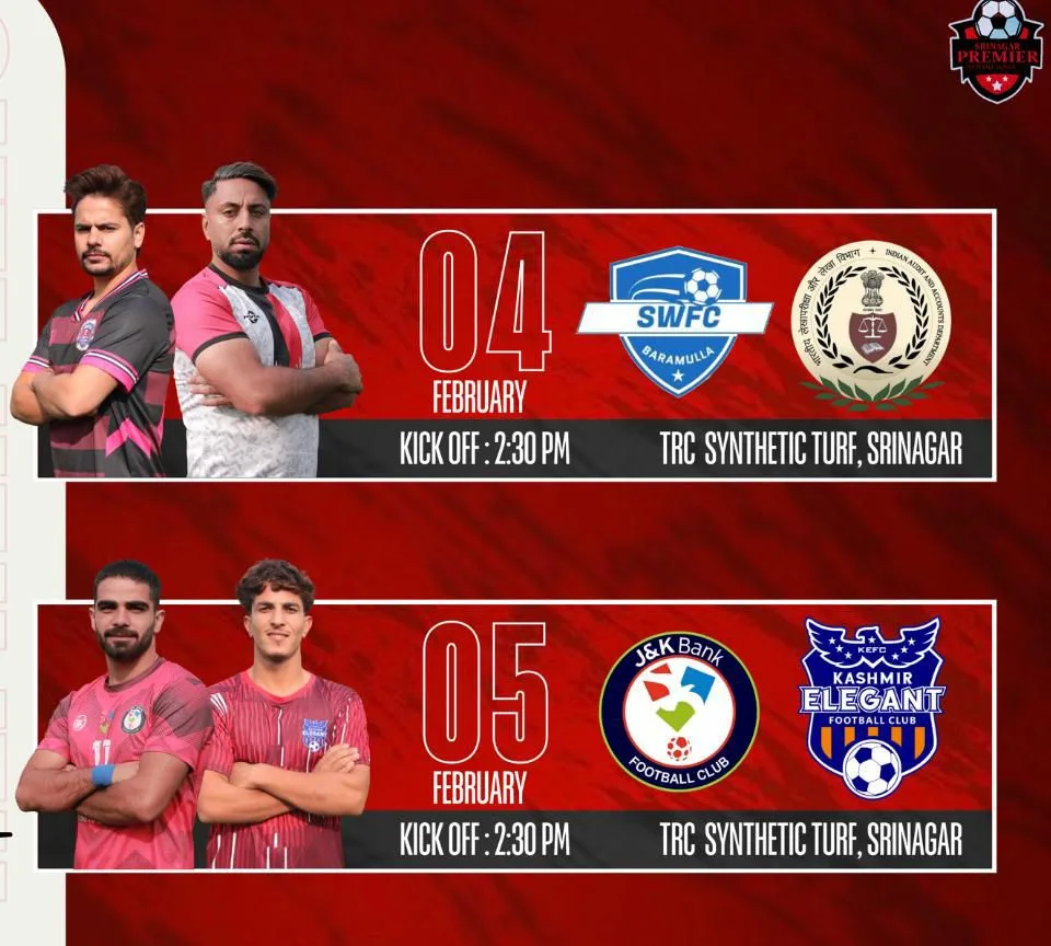 Following this, on Wednesday, 05 February 2026, football fans will witness an exciting clash between J&K Bank Football Club and Kashmir Elegant Football Club. The match is also scheduled to begin at 2:30 PM at the same venue.