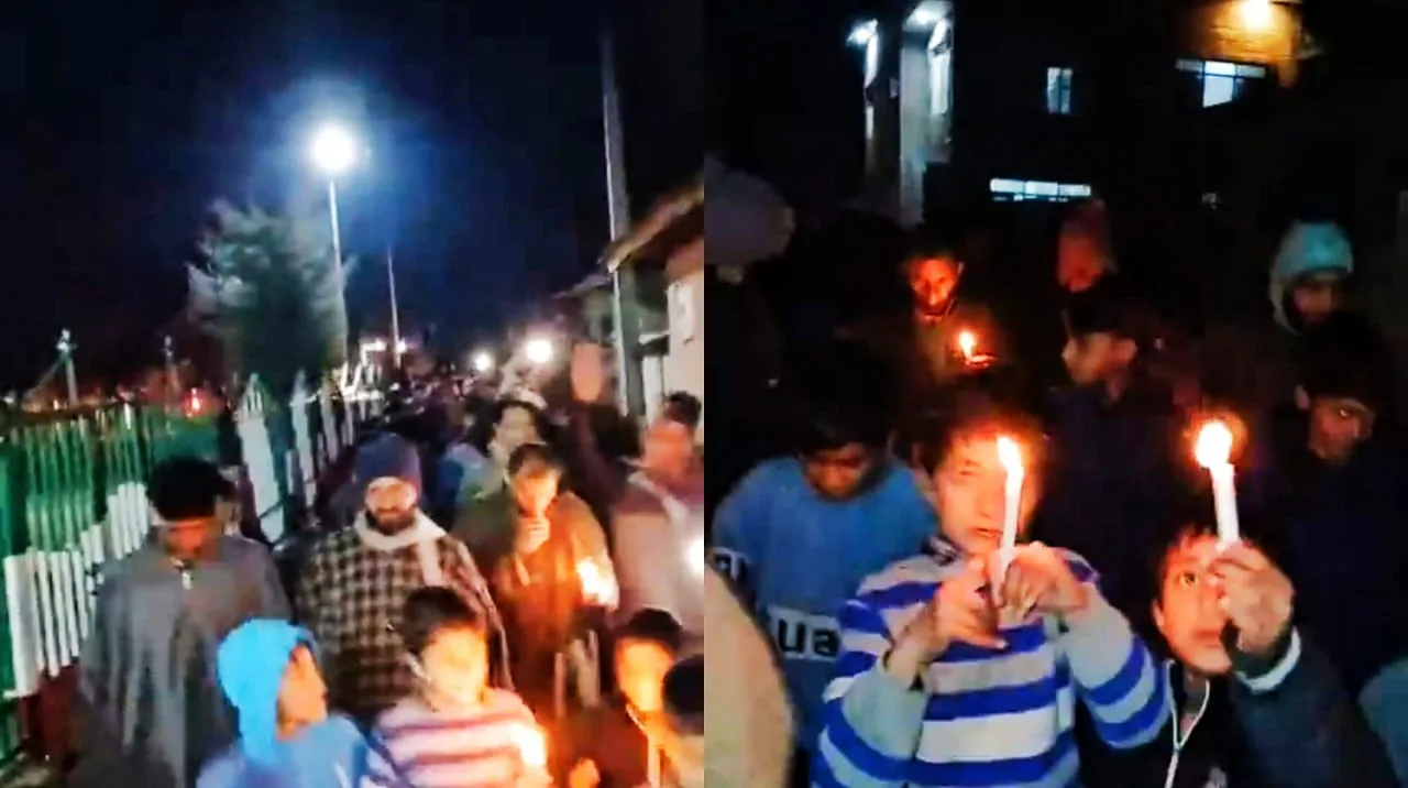 Pattan, Feb 08 (JKNS): The residents of Goom Ahmadpora Mohalla, Aligarh on Sunday evening organized a peaceful candlelight march to condemn the killing of members of the Shia community in Islamabad, Pakistan.