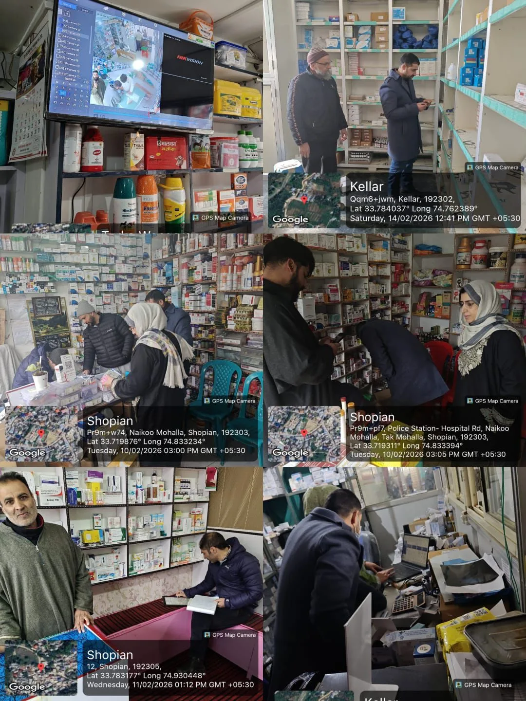 Shopian, Feb 14 (JKNS): On the directions of the Deputy Commissioner (DC) Shopian, Shishir Gupta, the Drugs Control Department, Shopian conducted extensive inspections across various villages and market areas of the district from 10 February to 14 February 2026 to ensure strict compliance with the provisions of the Drugs and Cosmetics Act and Rules.