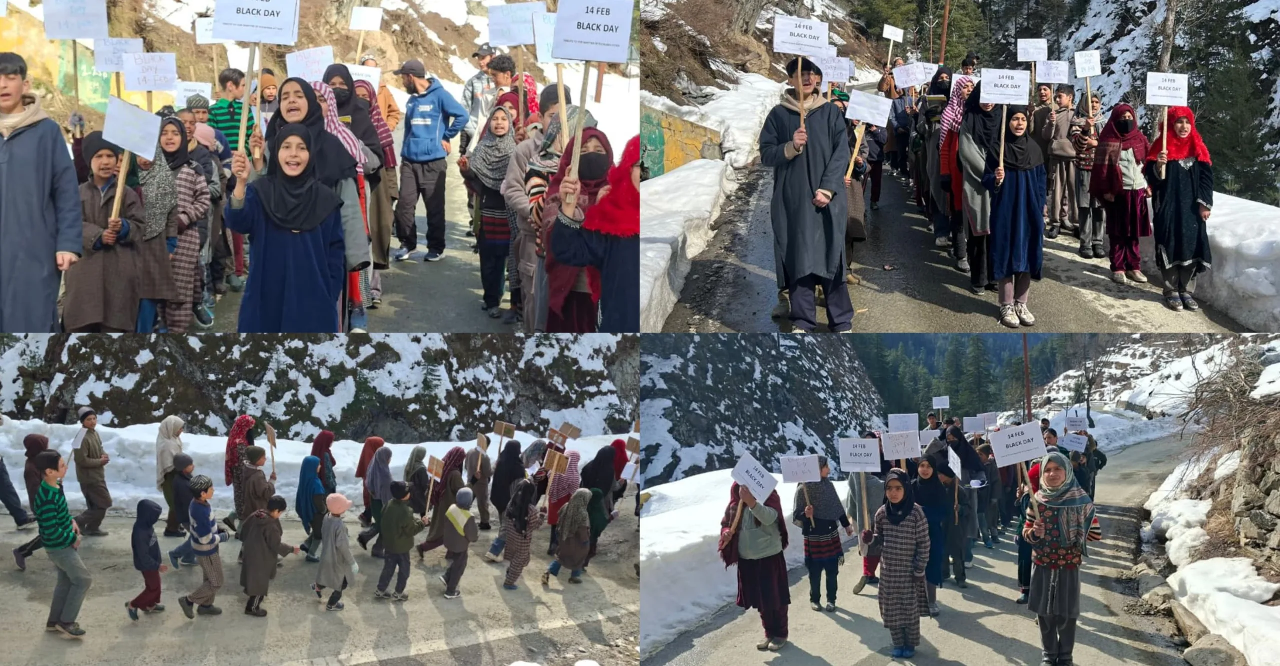 Kupwara, Feb 14 (JKNS): Despite heavy snowfall and biting cold, the spirit of remembrance shone brightly today in Kundian village, near Keran, where young children carried the flame of patriotism door to door to honour the martyrs of Pulwama.