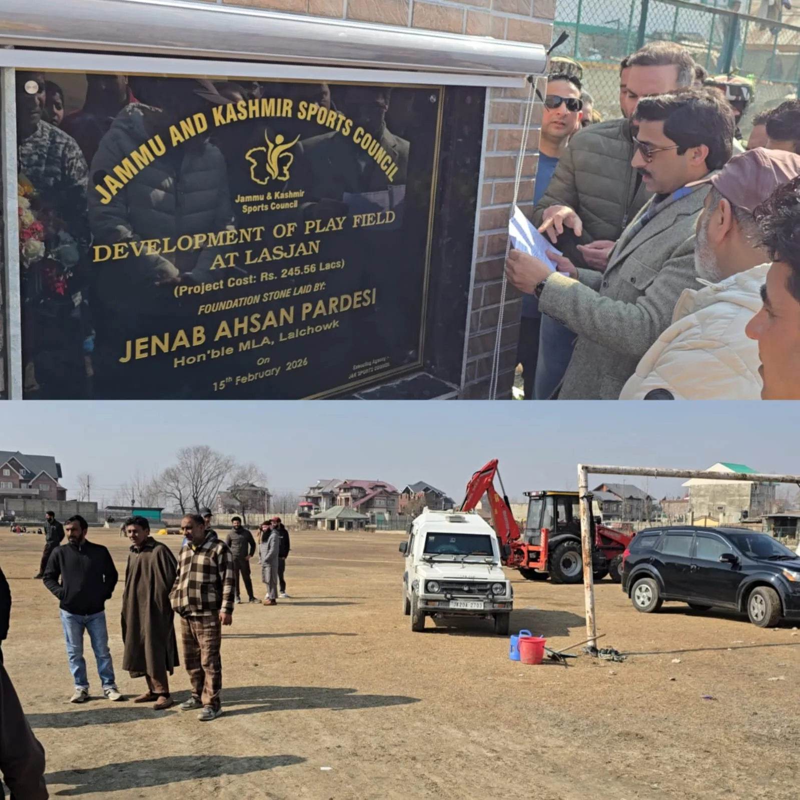 MLA Lal chowk Ahsan Pardesi laid the foundation stone for indoor stadium costing 2.45 crores at Lasjan Srinagar. This sports ground and indoor stadium was a poll promise he had made during the elections.