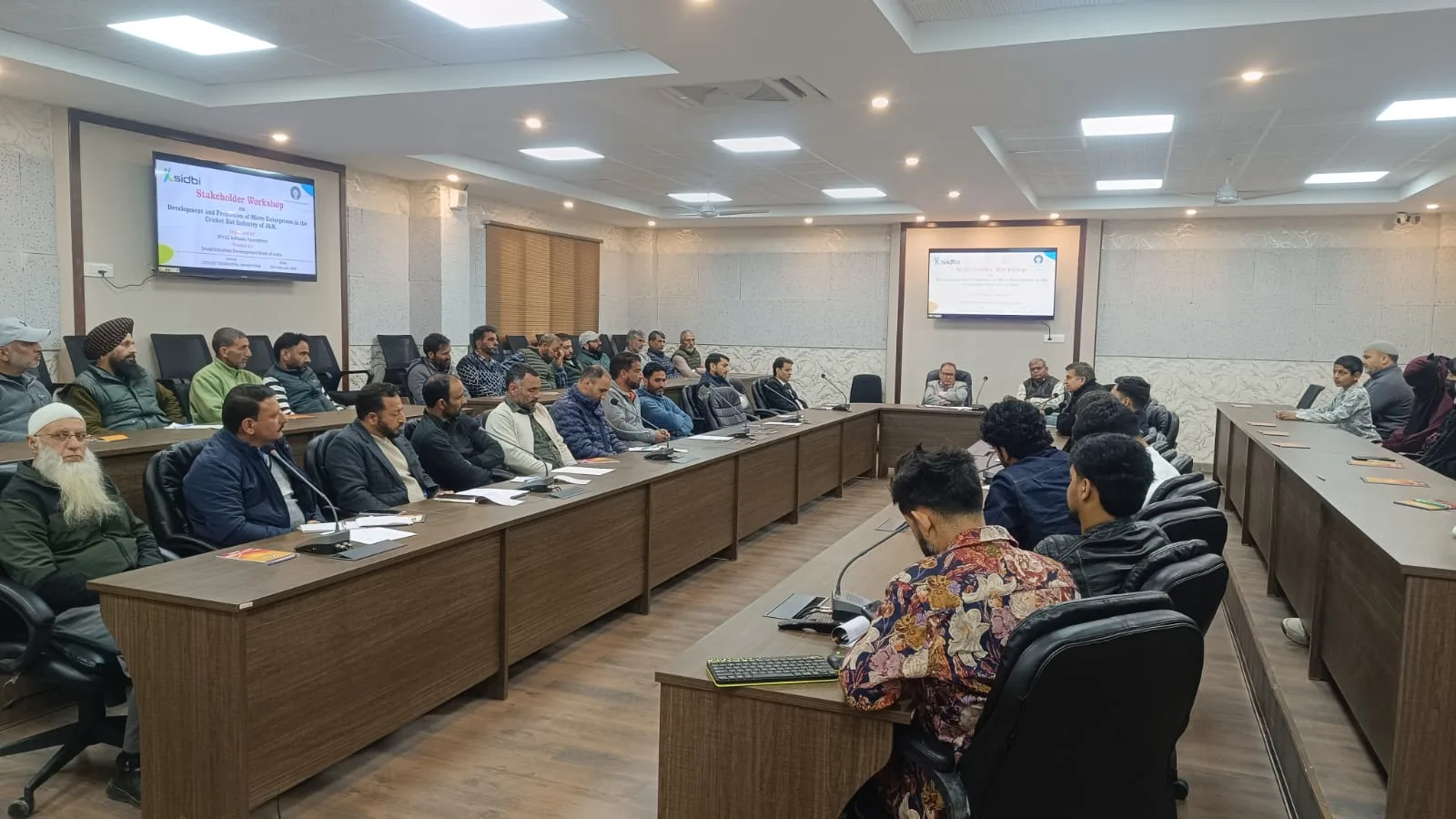 The event was attended by Shri Dheeraj Verma, AGM, SIDBI; Riyaz Ahmad Wani, Range Officer, Forest Department; Sajad Ahmad from Craft Development Institute Srinagar (CDI); representatives from the Handloom and Handicrafts Department, banking institutions, and a large number of cricket bat manufacturers, owners, and association heads from the bat cluster.