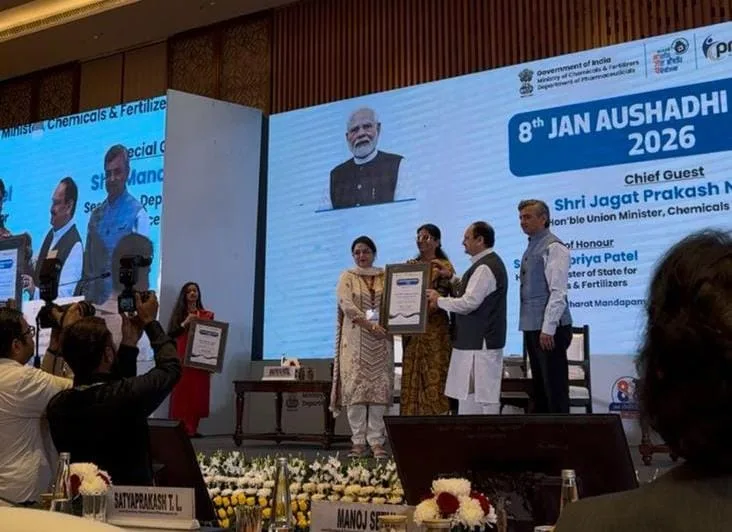 The award was given in the presence of Minister of State for chemicals and fertilizers, Anupriya Patel Guest of Honour and Secretary Department of Pharmaceuticals Shri Manoj Joshi Special Guest.
