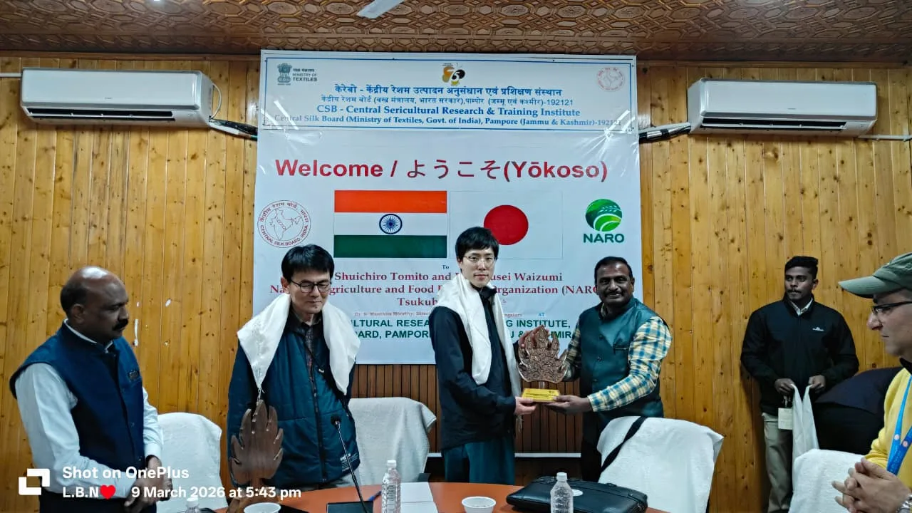 Srinagar, Mar 10 (JKNS): A high-level delegation of sericulture experts from Japan and India visited the Central Sericultural Research and Training Institute (CSR&TI), Pampore, on yesterday, to review the progress of the ongoing Indo–Japan collaborative research project in sericulture.
