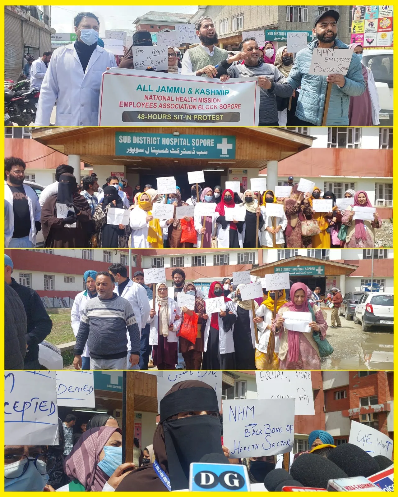 Sopore, Apr 1 (JKNS): Scores of employees of Block Sopore working under the National Health Mission in Jammu and Kashmir Wednesday held a protest demonstartion and called for a 48-hour sit-in to press for their ong-pending demands.