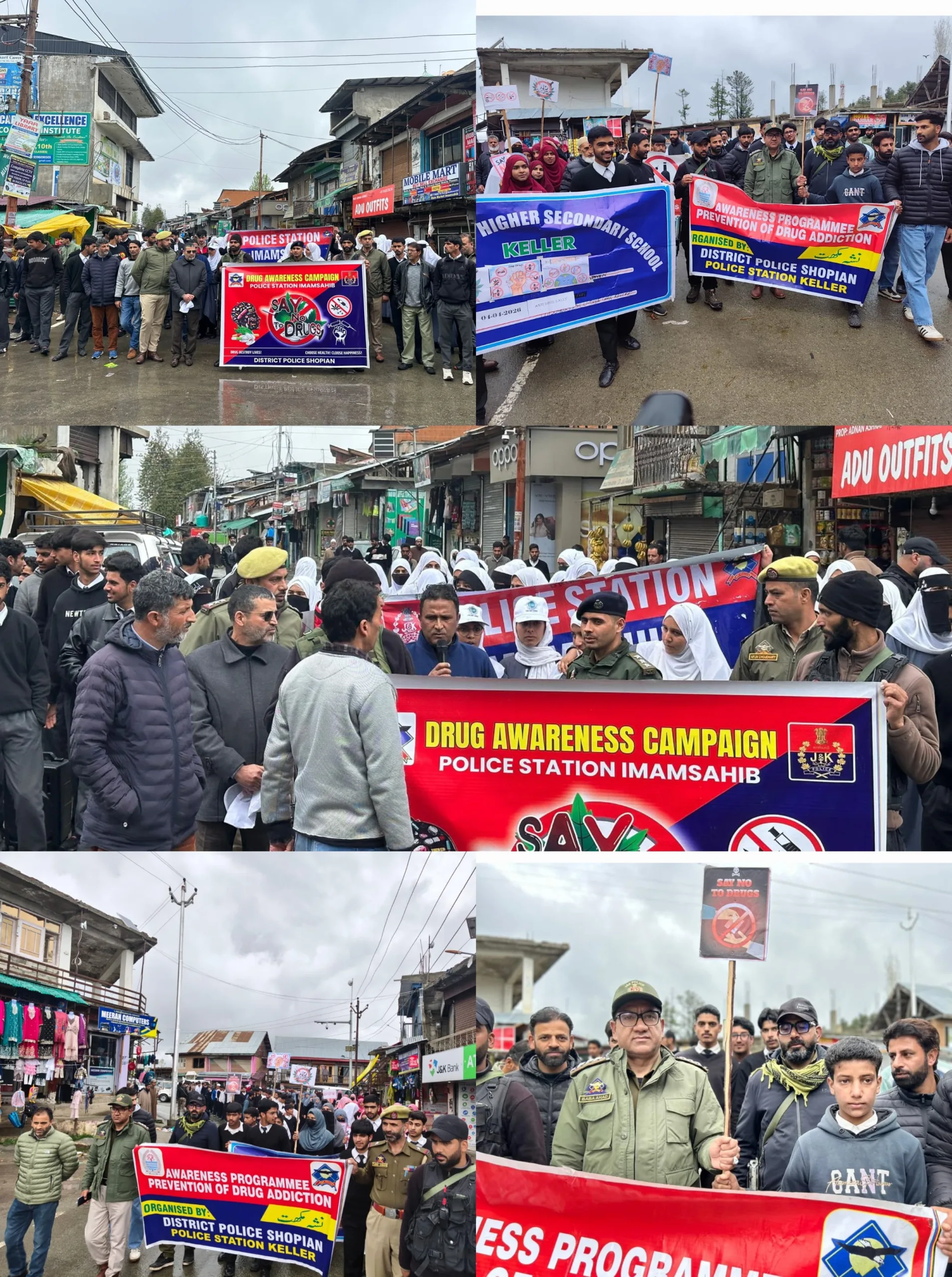 Shopian, Apr 4 (JKNS): In continuation of its sustained efforts to eradicate the menace of drug abuse from society Shopian Police in collaboration with Government Higher Secondary School Keller and Government Higher Secondary School Imamsahib, organized a comprehensive drug awareness rallies across the Keller and Imamsahib areas of the district.