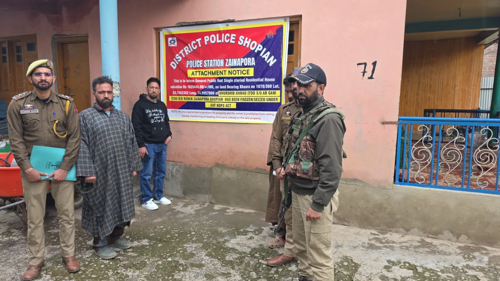 As part of its ongoing drive against narcotics related activities, Shopian Police have attached a single-storey residential house valued at ₹16,20,444/- under Khasra No. 1070/360, belonging to Khurshid Ahmad Itoo a resident of Takiya Reban Zainapora.