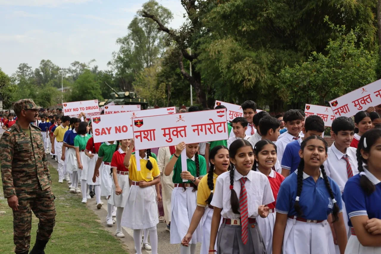 The campaign commenced with a Joint Pledge Ceremony followed by Pad Yatra by school children and NCC cadets at Nagrota, symbolising a unified resolve to combat the menace of drug abuse.