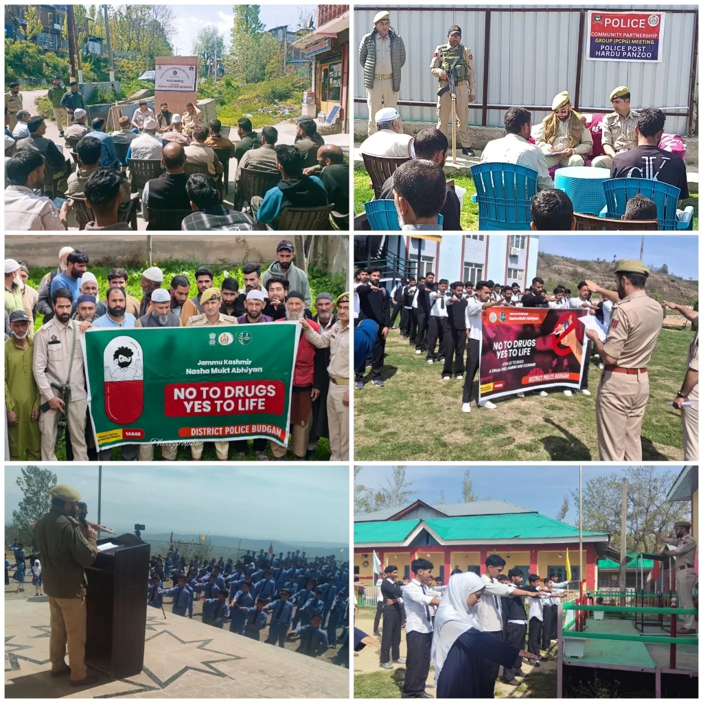 In a statement issued here to news agency JKNS, As part of the ongoing 100-day campaign under the Nasha Mukt Jammu & Kashmir Abhiyan, Budgam Police today organized village-level Police Community Partnership Group (PCPG) meetings at Sonpah (Beerwah), Khag, and Checkmarg (Hardpanzoo).