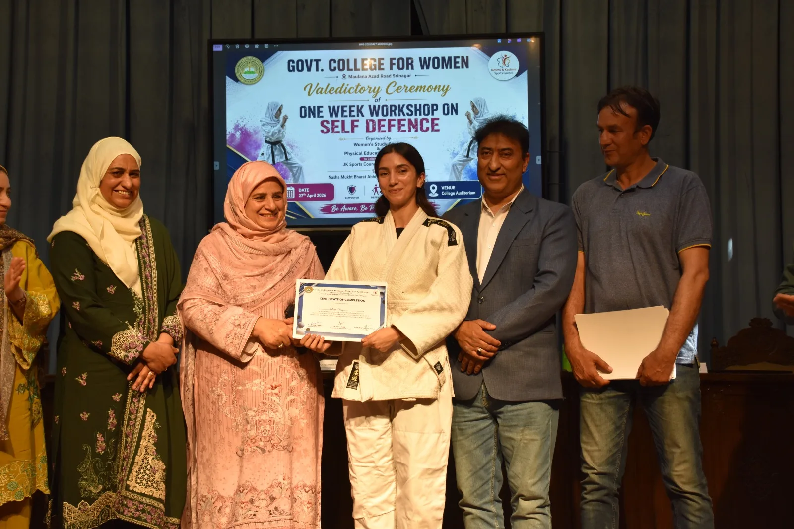 Srinagar, Apr 27 (JKNS): A week-long self-defence workshop aimed at empowering young women with essential safety skills concluded at Government College for Women (GCW), M.A. Road, Srinagar on Monday, with officials highlighting its role in building confidence, resilience and awareness among students.