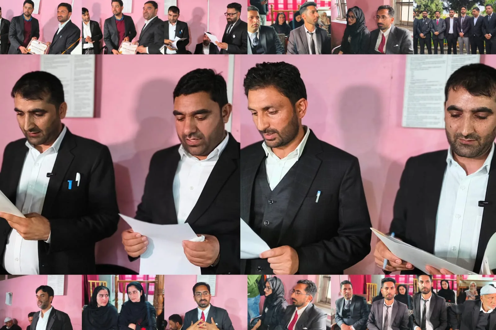 The ceremony was conducted under the supervision of Chief Election Commissioner of the Bar Association, Advocate Javid Ahmad Lone. Senior Advocate Ali Mohammad Magray, along with other members of the legal fraternity, was also present on the occasion.