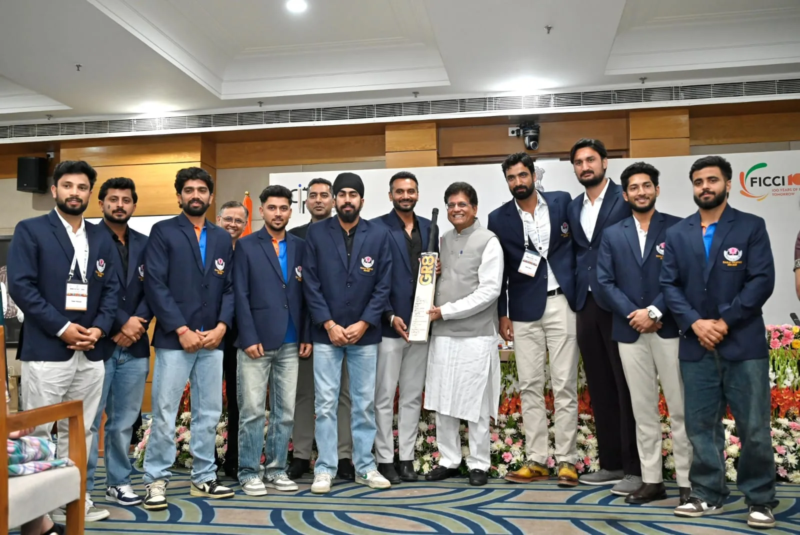 Srinagar, Apr 28 (JKNS): Union Minister for Commerce and Industry Piyush Goyal on Tuesday expressed delight after receiving a GI-tagged Kashmir Willow Bat from the Jammu & Kashmir cricket team, winners of the recently held Ranji Trophy.