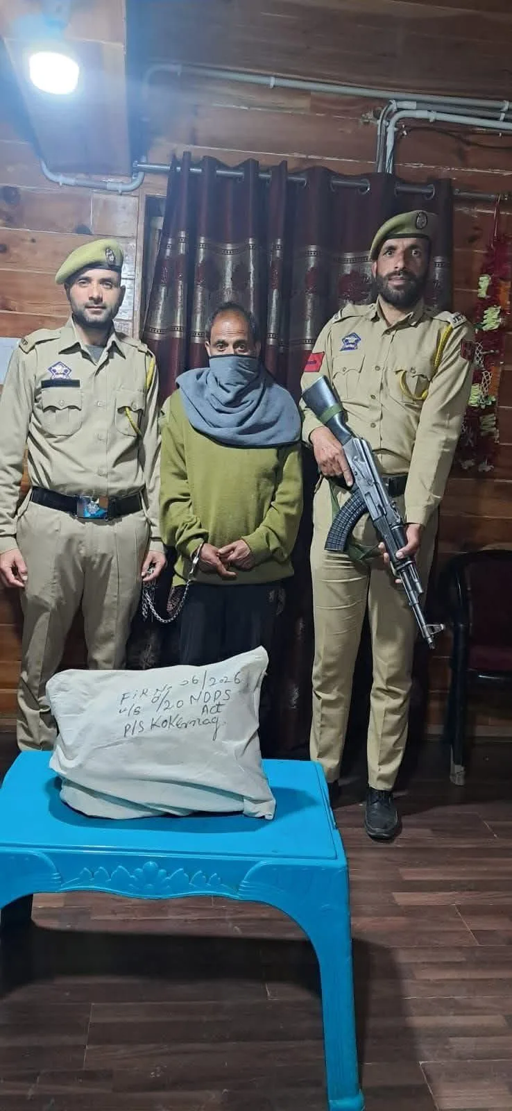 Police spokesperson in a statement issued here to news agency JKNS reads, Police achieved a significant success by apprehending a drug peddler and recovering a substantial quantity of contraband in Kokernag area.